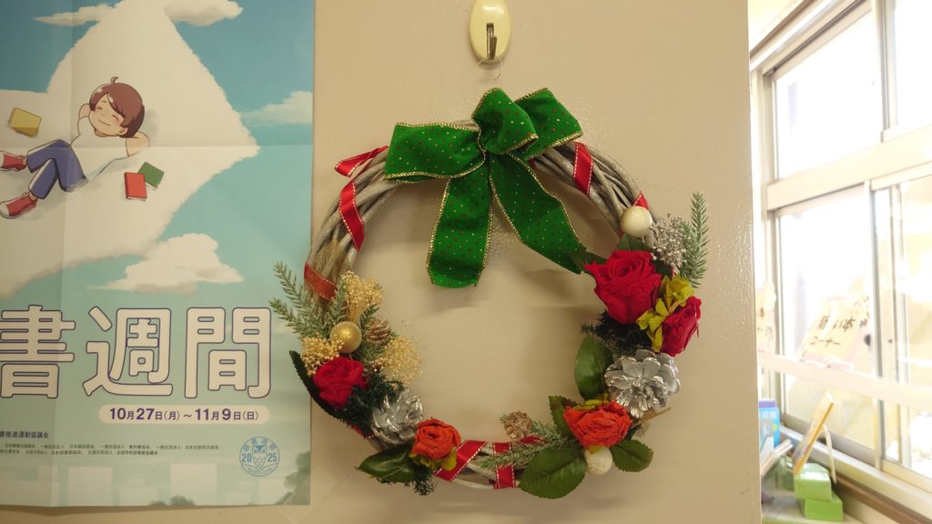 本棚の方にもリースを飾っていただきました。