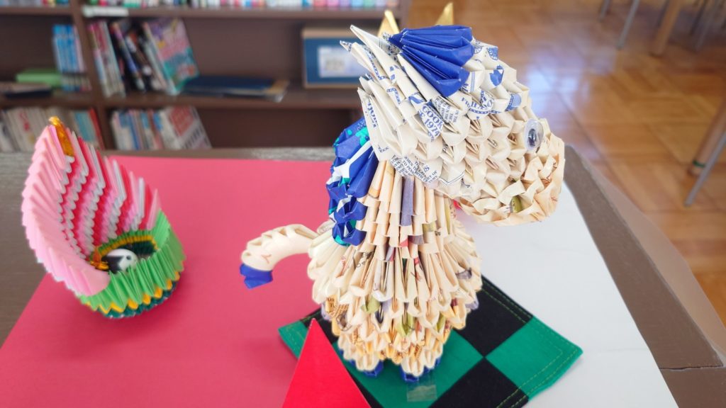 ということで、今日は恒例の図書室飾り付けでした。
